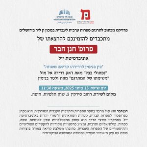 הרצאה במסגרת פרויקט מכתוב לספרות ערבית בעברית. ההרצאה תתקיים במקום לשירה, רחוב סירקין 5, שוק תלפיות, חיפה.