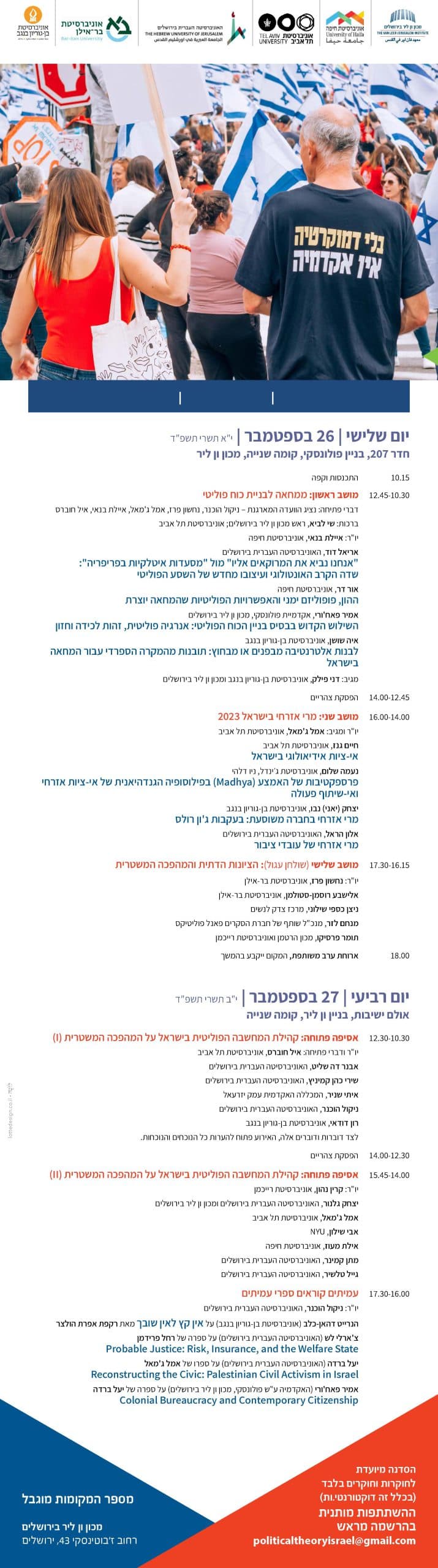 ההשתתפות מותנת בהרשמה מראש politicaltheoryisrael@gmail.com