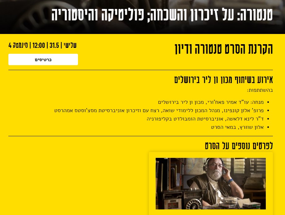 בסינמטק תל אביב | טנטורה: על זיכּרון ושכּחה; פוליטיקה והיסטוריה