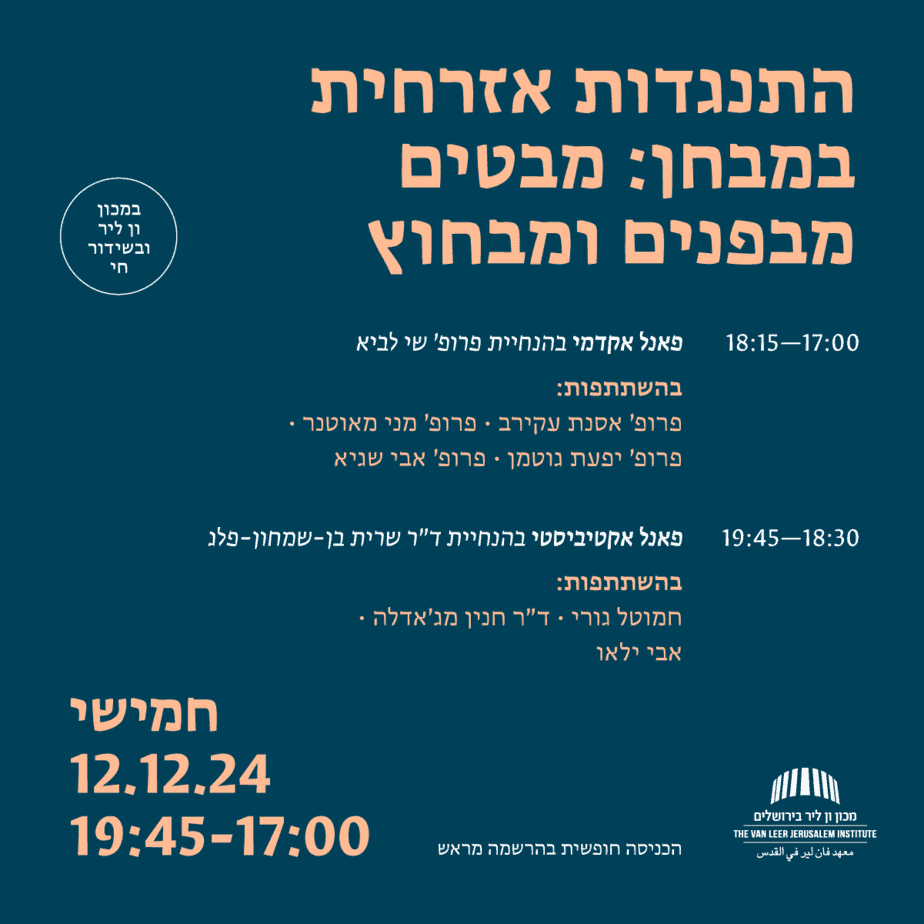 מנחה: פרופ' שי לביא, ראש מכון ון ליר בירושלים; אוניברסיטת תל אביב