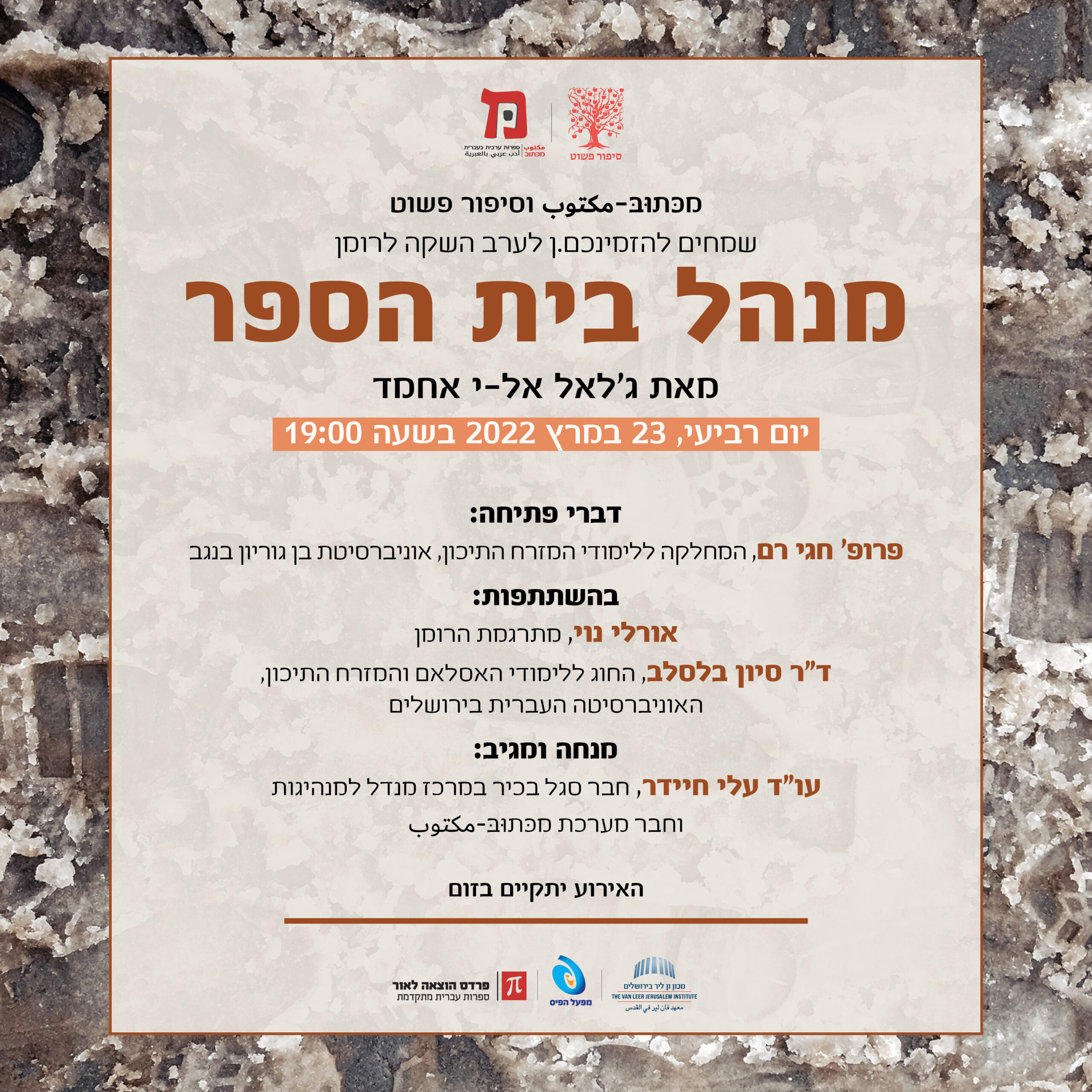 ערב השקה לרומן מנהל בית הספר מאת ג'לאל אל-י אחמד |