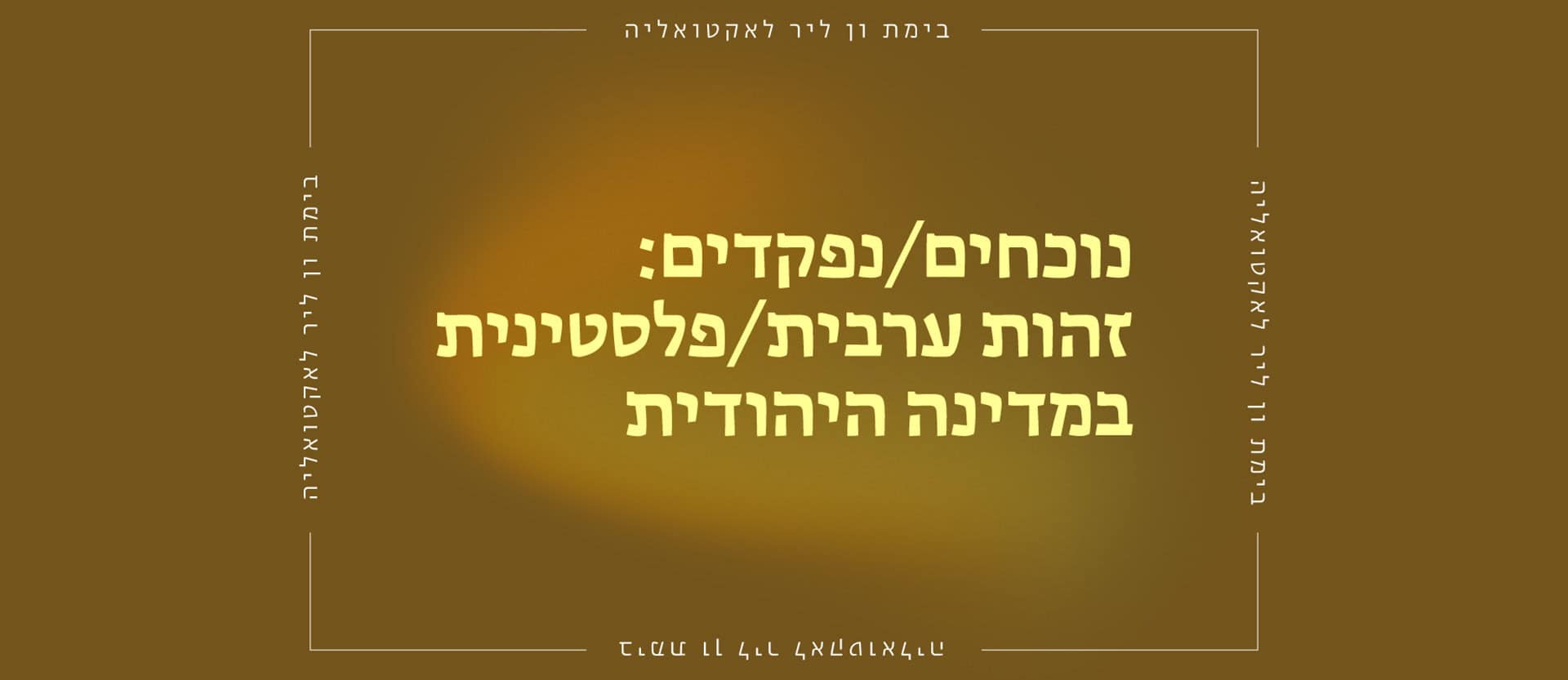 במהלך בימת ון ליר זו יעלו סוגיות של זהות, זכויות, מיעוטים, אלימות, תרבות ותקשורת. לצד ההיבטים החברתיים והפוליטיים, נבחן גם כיצד מתמודדים עם המתח שבין המהויות השונות – האישית, הקולקטיבית והחוקית – של הזהות הערבית/פלסטינית במדינת ישראל.