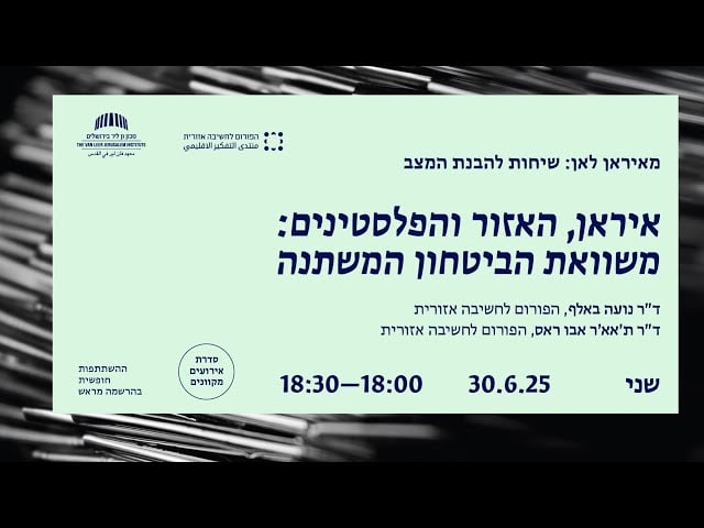איראן, האזור והפלסטינים: משוואת הביטחון המשתנה 30.6