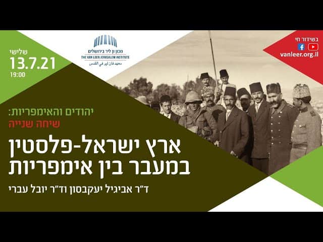מלחמת העולם הראשונה חוללה תמורה רבת משמעות במקומה של פלסטין-ארץ ישראל: לאחר 400 שנה תחת הסדר האימפריאלי העות'מאני היא הפכה לחלק מהאימפריה הבריטית. תמורה זו הובילה לשינויים רחבי היקף במוקדי ההשתייכות האזוריים, הקהילתיים והגלובליים של בני הארץ והמתיישבים בה. במפגש ידונו ד"ר אביגיל יעקבסון וד"ר יובל עברי בתקופת המעבר בין שני הסדרים האימפריאליים; בצורות שבהן תפסו את עצמם בני קהילות שונות – אלה שהשינוי הוביל לירידה במעמדם ואלה שיצאו נשכרים ממנו; בהשלכות של המעבר על מוקדי ההשתייכות הלאומיים שהתגבשו במרחב; בשאלת הקיום היהודי–ערבי המשותף; בריבוד האתני בתוך האוכלוסייה היהודית; ובתמורות שחלו בחוויה האורבנית בת הזמן.