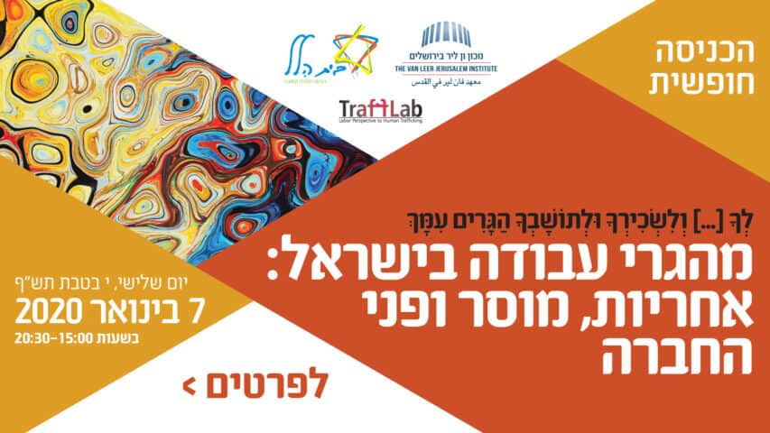 בכנס זה נבקש לבחון את סוגיית מהגרי העבודה על מאפייניה השונים, על השאלות החברתיות והמוסריות שהיא מעלה ועל מגוון הזוויות היהודיות-הלכתיות והמוסריות-אוניברסליות הרלוונטיות לה.
