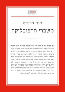 Discussion (in Hebrew) on the book by Hannah Arendt