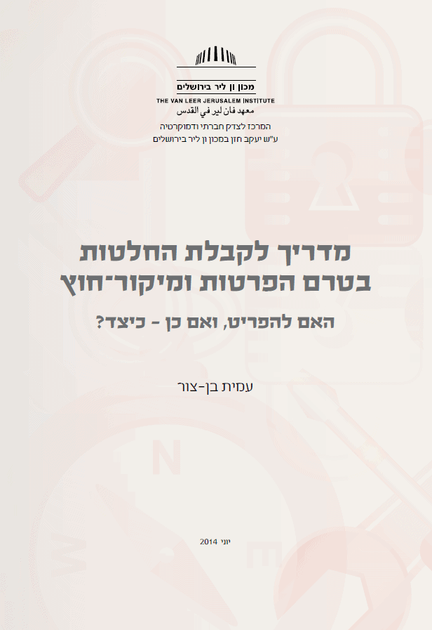 The Center for Social Justice and Democracy in Memory of Yaacov Chazan at the Van Leer Jerusalem Institute, which was established jointly with the kibbutz movement’s Yaacov Chazan Memorial Fund, operated at the Institute between 2007 and 2018. The center strove to connect theoretical discussion and academic activity with social action and influencing decision makers. The center dealt with three main topics: privatization, regulation, and shared governance. The products of these studies appeared in books, position papers, policy documents and recommendations, and practical guides.