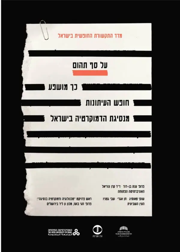 This report offers a new, empirically grounded, data-driven measurement framework for understanding the relationship between press freedom and democratic backsliding in Israel. It maps ownership structures in the media market and presents innovative indicators of media dominance that combine audience exposure, media platforms, and the extent of control held by ownership groups. In addition, the report reviews legislative initiatives aimed at curbing freedom of the press and expression; measures the extent of violence against journalists by citizens and by law-enforcement agencies; and describes the growing use of libel suits as a tool of deterrence and silencing. Through network, polarization, and toxicity analyses, it also exposes the camp-based alignment of journalists and politicians on the X platform.