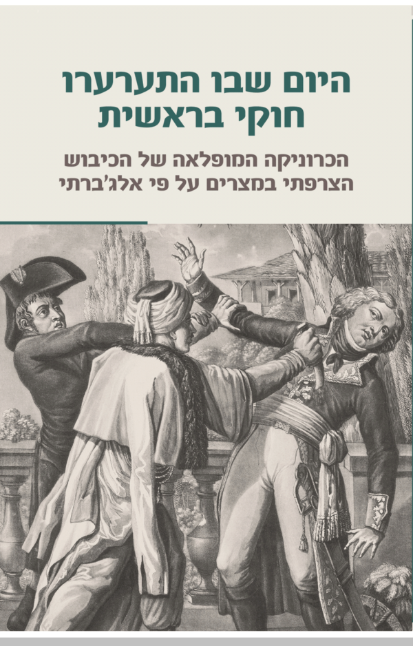 This is a marvelous chronicle of the events written from the Arab point of view, and it is especially astounding in light of the conventions and the European history books familiar to the Hebrew reader. Abd Al-Rahman Al-Jabarti, who was 45 years old when the French troops landed in Egypt on July 1, 1798, sat down in real time to document the defining moment in modern history in which, according to him, the laws of nature changed. Al-Jabarti describes the events—and Napoleon Bonaparte, who was then only 29 years old—without the historiographic bias that in retrospect ascribes to the French military leader the power and status he achieved later in European history.