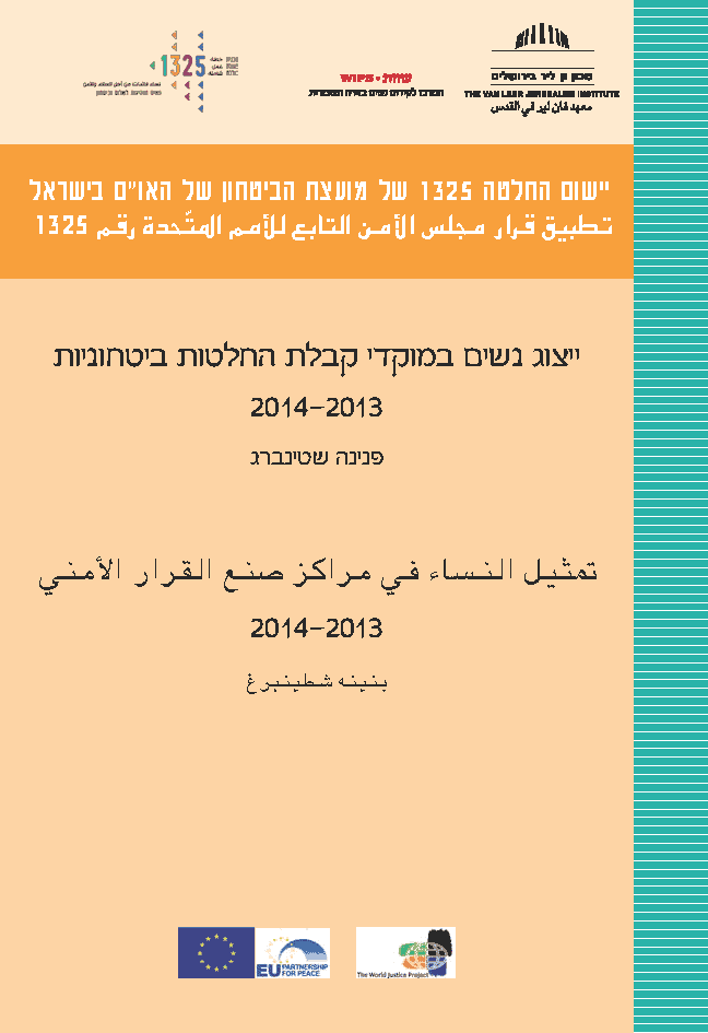 The State of Israel was one of the first member states of the United Nations to adopt the resolution into legislation and to approve legislation that made women’s representation in public bodies obligatory. But there was still a need to write and implement a comprehensive action plan. To that end, dozens of women’s organizations, human rights organizations, and feminist activists joined together. Ten roundtable discussions, which took place from January 2012 to October 2013, led to a draft of a comprehensive action plan that covered many topics. The draft of the action plan was completed in October 2013 and was presented to the government as a tool for implementing UN Security Council Resolution 1325.