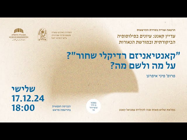 As in many places worldwide, the Spinoza Center at the Van Leer Jerusalem Institute will mark the event with a series of lectures on various aspects of Kant’s philosophy that may enrich thinking about current social and political issues.