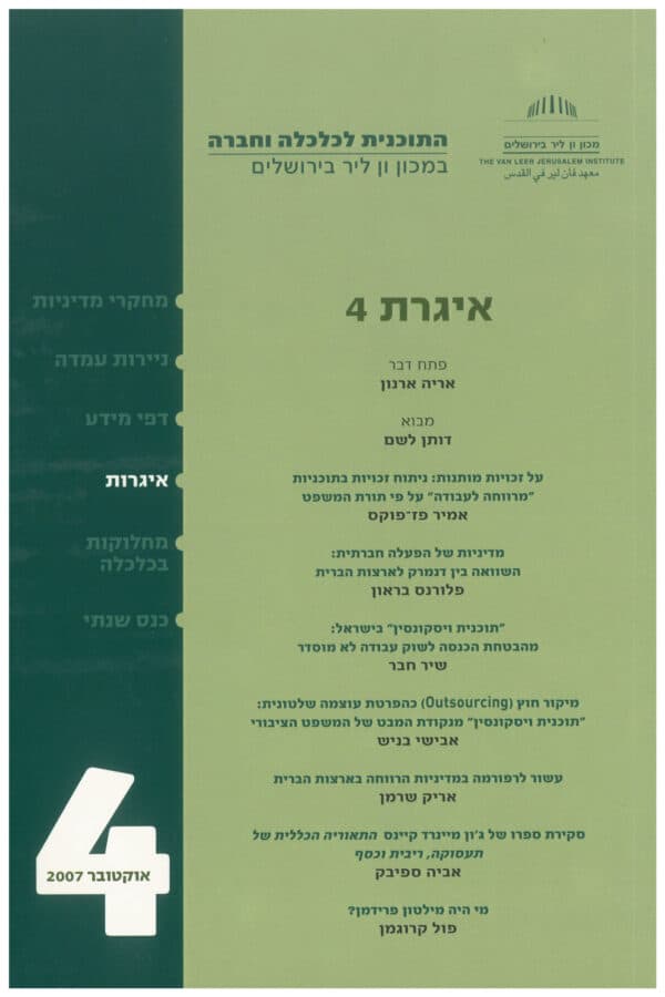 האגרת לכלכלה וחברה מספקת בימה ייחודית לשיח בנושאי כלכלה וחברה בישראל. באגרת מופיעים מאמרים, מסות וסקירות ספרים המתמקדים ביחסים המורכבים שבין החברה, השוק והמדינה לצד מאמרים העוסקים באופן ביקורתי בחשיבה הכלכלנית. האגרת, המציגה מחקרים אקדמיים מעמיקים, כתובה באופן בהיר ונגיש לכלל הציבור המתעניין בנושאי חברה וכלכלה, במטרה להפוך את הדיון בנושאים אלה לפתוח ולדמוקרטי.