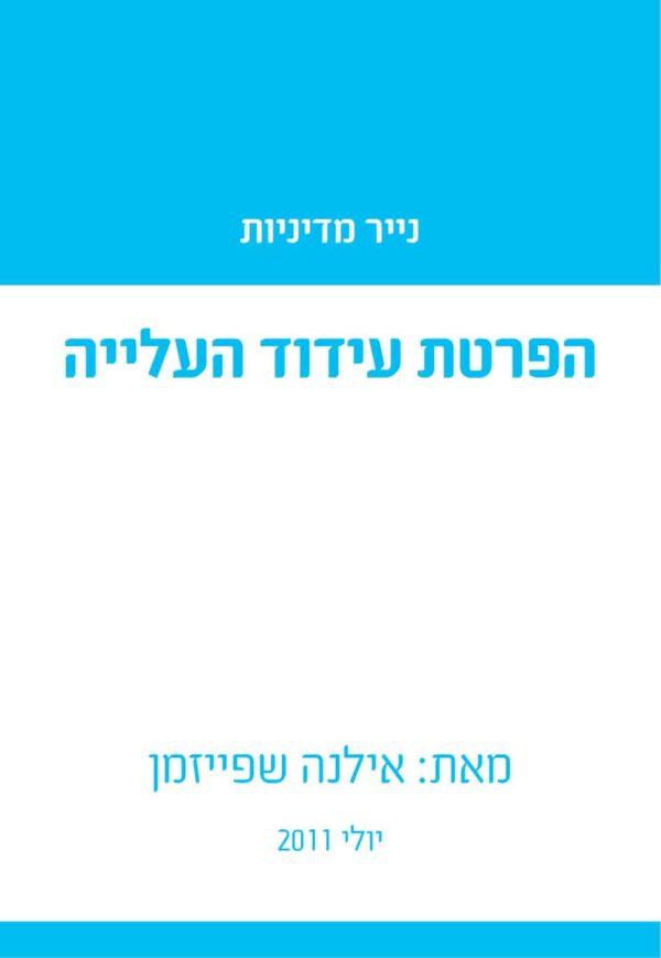 משנת 2005 מתרחש הרחק מעיני הציבור תהליך שבו התפקיד של הבאת העולים מצפון אמריקה מועבר מהסוכנות היהודית – שהיא גוף המייצג את כל העם היהודי בישראל ובגולה ואת מדינת ישראל -- לארגון פרטי הנקרא "נפש בנפש". בצד הגידול שחל במספר העולים מצפון אמריקה בעקבות פעילות ארגון נפש בנפש, הביא תהליך ההפרטה גם לידי פגיעה בשוויון בין העולים, בנגישות של שירותי עידוד העלייה הניתנים בצפון אמריקה, ובאחריות המדינה לעלייה לישראל –אחריות הנובעת מתוך תפיסה כוללת שלפיה מדינת ישראל היא בית לאומי לכלל העם היהודי ברחבי העולם כולו. העברת האחריות לעידוד עלייה לגוף פרטי עשויה ליצור מצב שבו ישראל תהפוך למדינה שקולטת עלייה באופן סלקטיבי, בהתאם לסוג הפעילות ולאינטרס של הגוף הפרטי, שאינו בהכרח מחויב לערכים ולמטרות הממלכתיים. תהליך זה עלול לפגוע באחת מאבני היסוד של מדינת ישראל. יתרה מכך, המעבר ממדיניות כוללת למדיניות סלקטיבית נעשה בלא שום דיון ציבורי. נייר עמדה זה מתאר את תהליך ההפרטה שהתרחש בתחום עידוד העלייה מצפון אמריקה ואת השלכותיו, ולהציג חלופות מדיניות שיכולות להקטין את הנזקים שתהליך זה גרם ועוד עלול לגרום בעתיד.