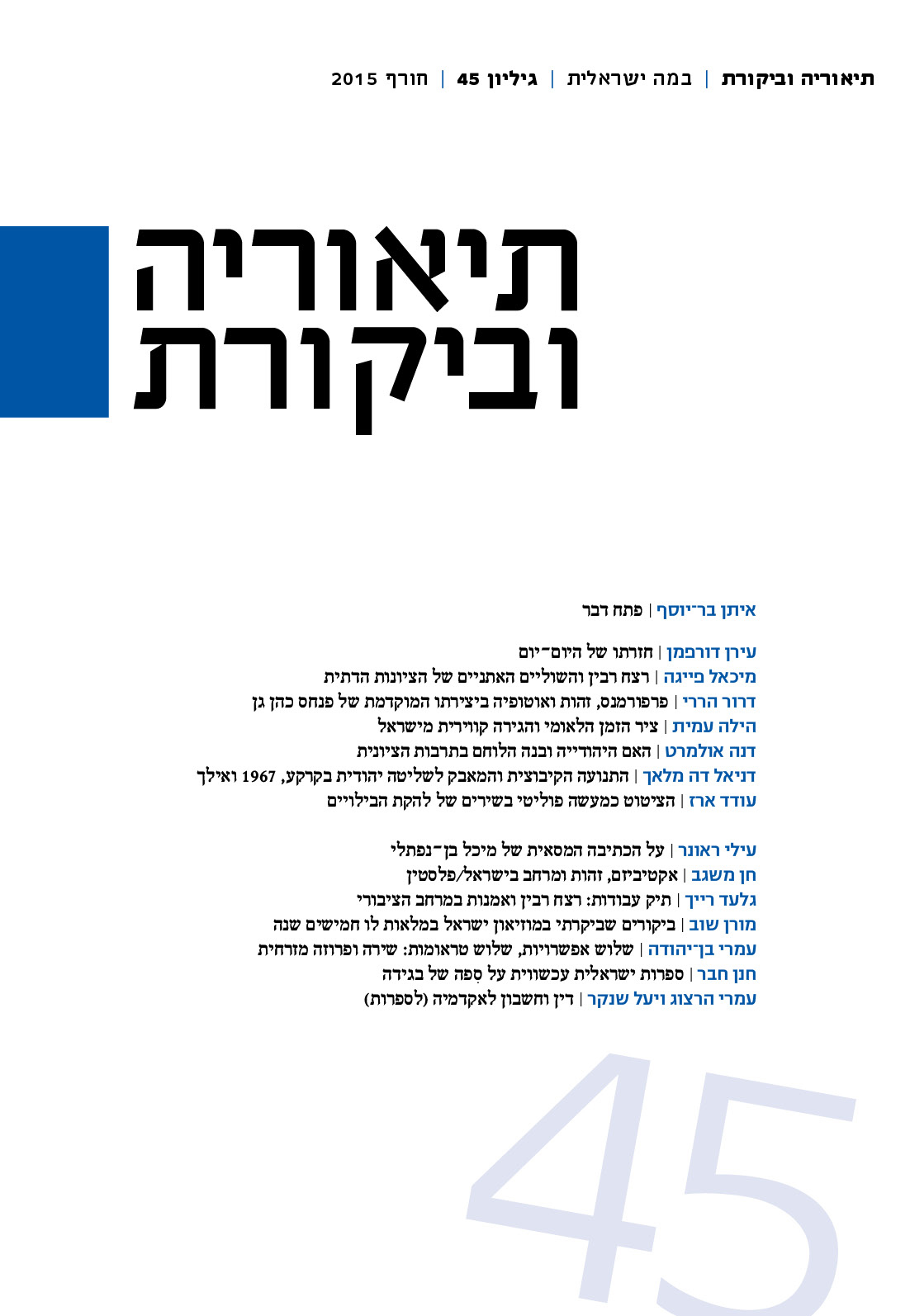 תיאוריה וביקורת | גיליון 45