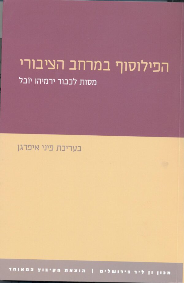 לקובץ זה לציון יום הולדתו ה־75 של פרופ' ירמיהו יוֹבל נבחרה הכותרת "הפילוסוף במרחב הציבורי", שכן היא משקפת את מעורבותו האינטנסיבית של יוֹבל, מאנשי הרוח הבולטים שצמחו בארץ, בשדה התרבותי והפוליטי בישראל ומחוצה לה. בביוגרפיה האינטלקטואלית של יוֹבל משובצים יחד מחקריו המעמיקים בהגותם של קאנט, הגל, שפינוזה, ניטשה, בצד מאמרים פובליציסטיים ותוכניות טלוויזיה על סוגיות בוערות בארץ ובעולם; ייסודו של מכון שפינוזה בירושלים, בצד הוראה באוניברסיטה העברית בירושלים ובניו־סקול שבניו־יורק.